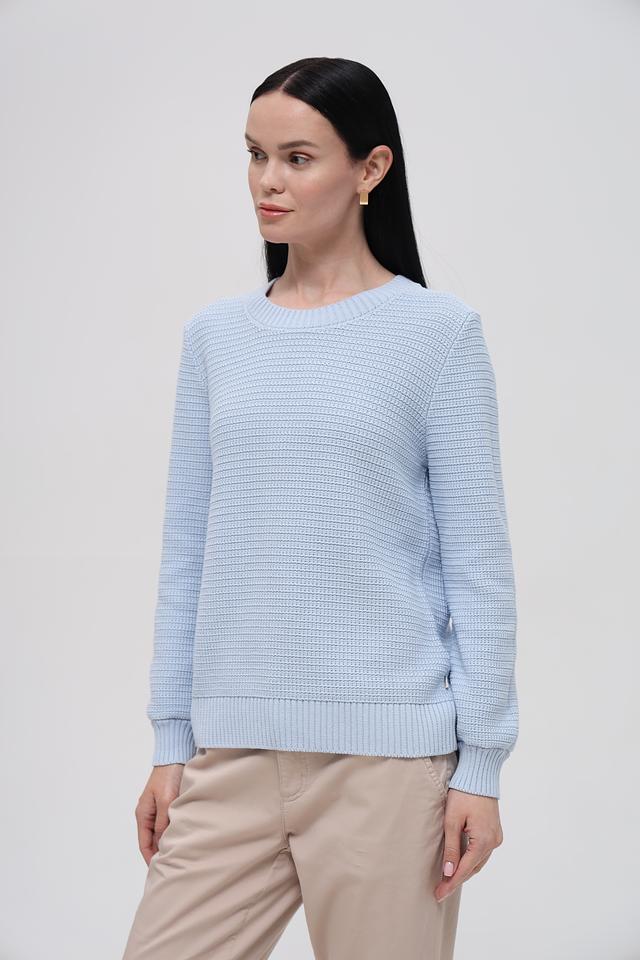 Женский пуловер Maerz голубого цвета выполнен из 100% хлопка с выразительной текстурой. Модель имеет круглый вырез горловины и свободный крой, что обеспечивает комфорт и универсальность. Состав: хлопок 100%