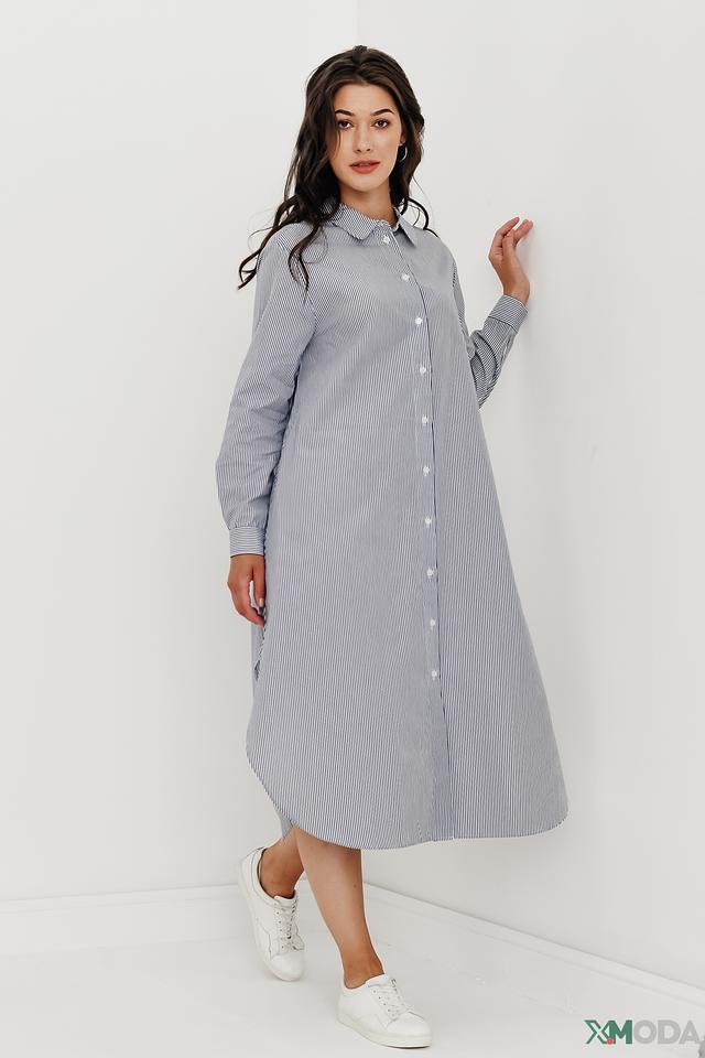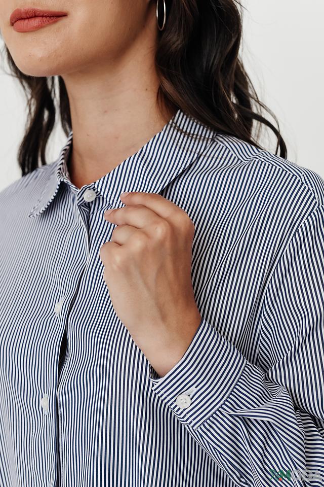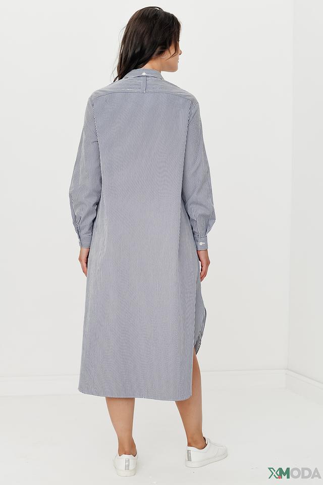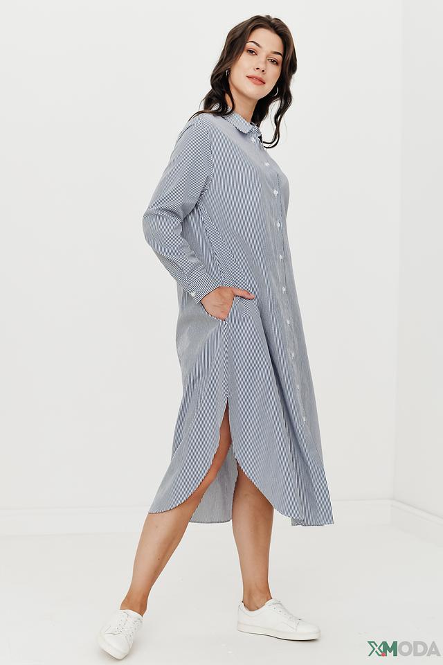 Это стильное платье рубашка от бренда Maerz станет отличным дополнением к вашему гардеробу. Выполнено в приятной голубой расцветке с вертикальной полоской, что визуально вытягивает силуэт.