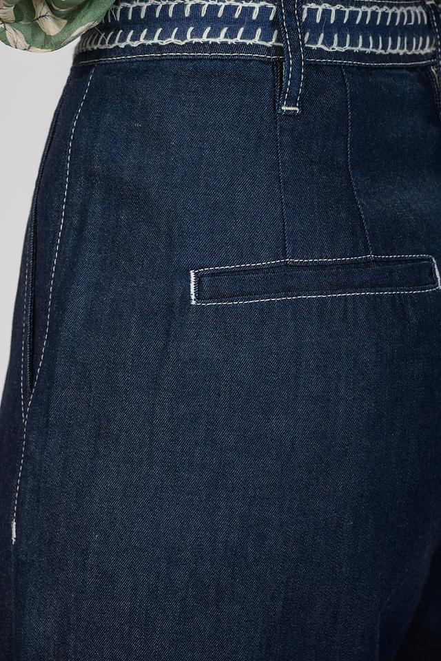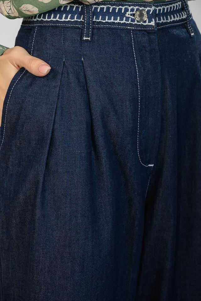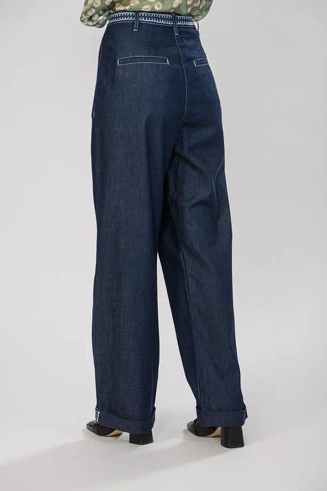Синие брюки от Malej — это стильное и комфортное решение для создания повседневного образа. Модель выполнена в широком крое с завышенной талией и оформлена защипами для придания объема. Состав включает луоселл и хлопок. Состав: луоселл 55%, хлопок 43%, лайкра 2%