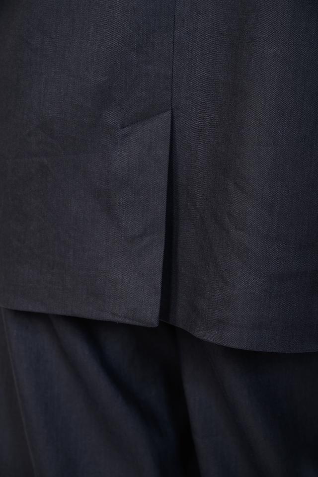 Жакет имеет прямой крой, который обеспечивает комфортную посадку по фигуре. Застежка на пуговицы, лацканы классической формы и накладные карманы придают ему завершенный вид. Рукава жакета имеют длину 3/4 и дополнены манжетами.