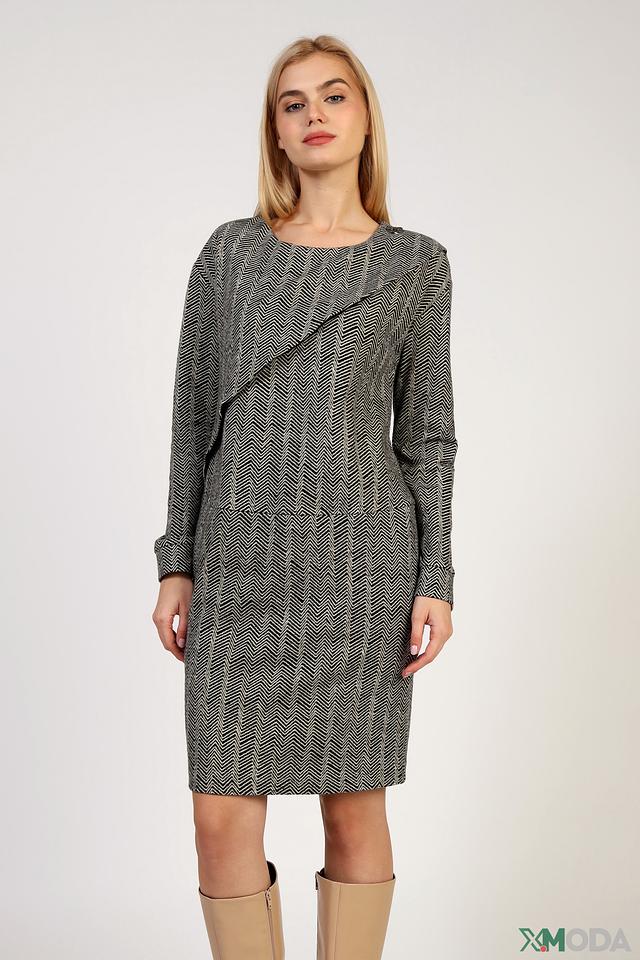 Платье Manila Grace серого цвета с геометрическим принтом "ёлочка" станет отличным выбором для создания элегантного образа. Модель с длинными рукавами и асимметричным воротником-драпировкой подчеркнет вашу индивидуальность. Состав: полиэстер 53%, хлопок 45%, эластан 2%