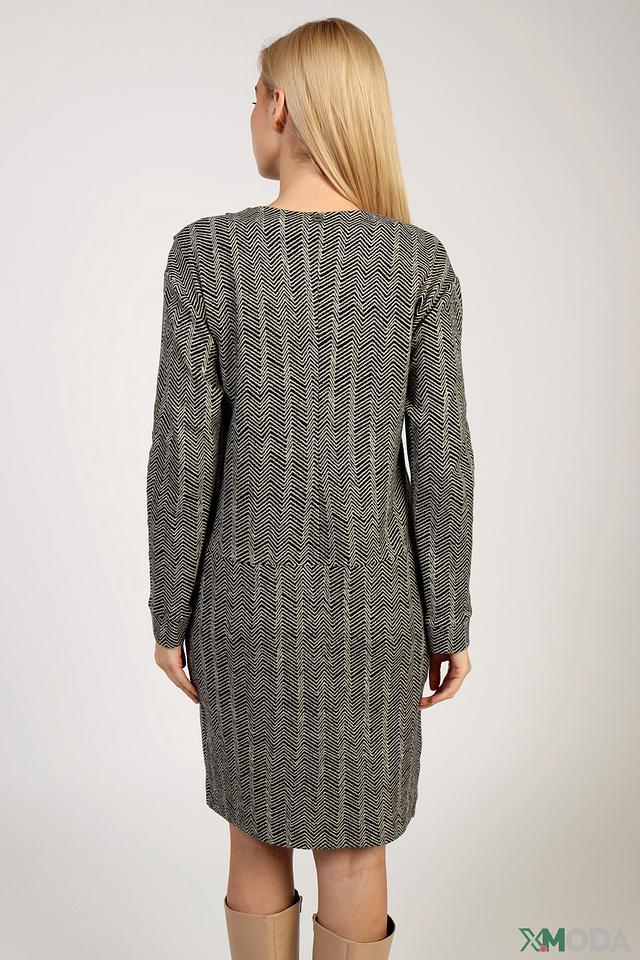 Это стильное платье от Manila Grace выполнено в серой цветовой гамме с выразительным принтом "ёлочка". Модель имеет прямой силуэт и длину до колена, что делает его универсальным для различных случаев.