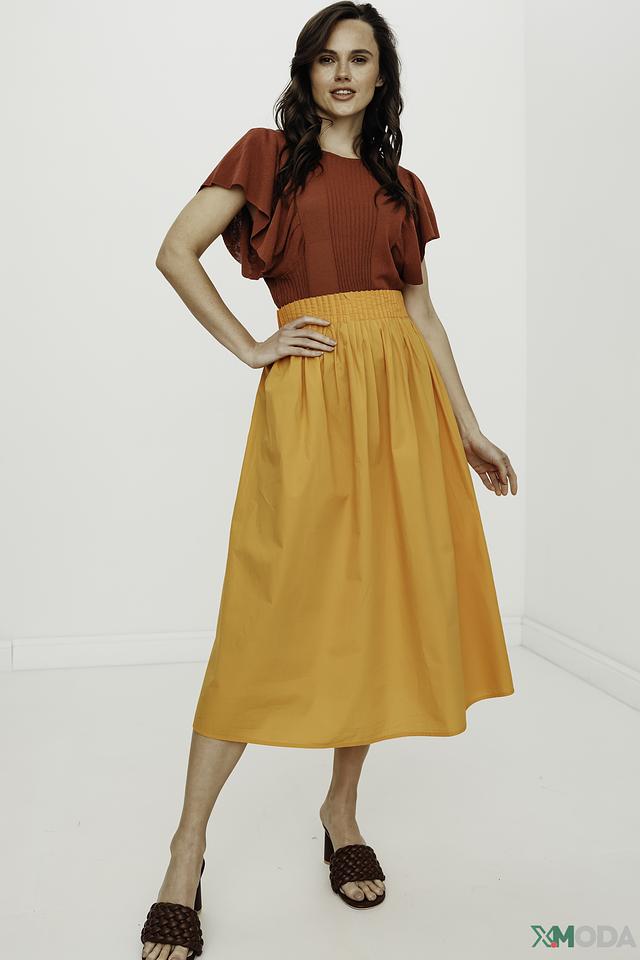 Джемпер имеет терракотовый цвет, который подчеркнет вашу индивидуальность и добавит образу теплоты. Оригинальный дизайн с воланами на рукавах и декоративной сборкой на талии делает его особенным и привлекательным.