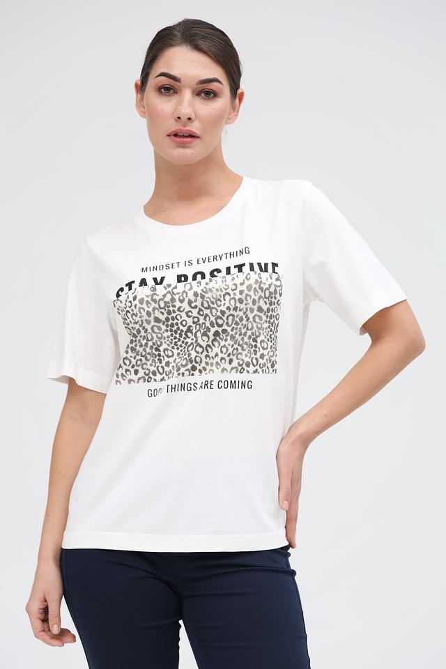 Эта стильная футболка от Marc Aurel станет отличным дополнением к вашему гардеробу. Выполнена в белом цвете и украшена ярким принтом, сочетающим в себе леопардовый узор и мотивирующую надпись.