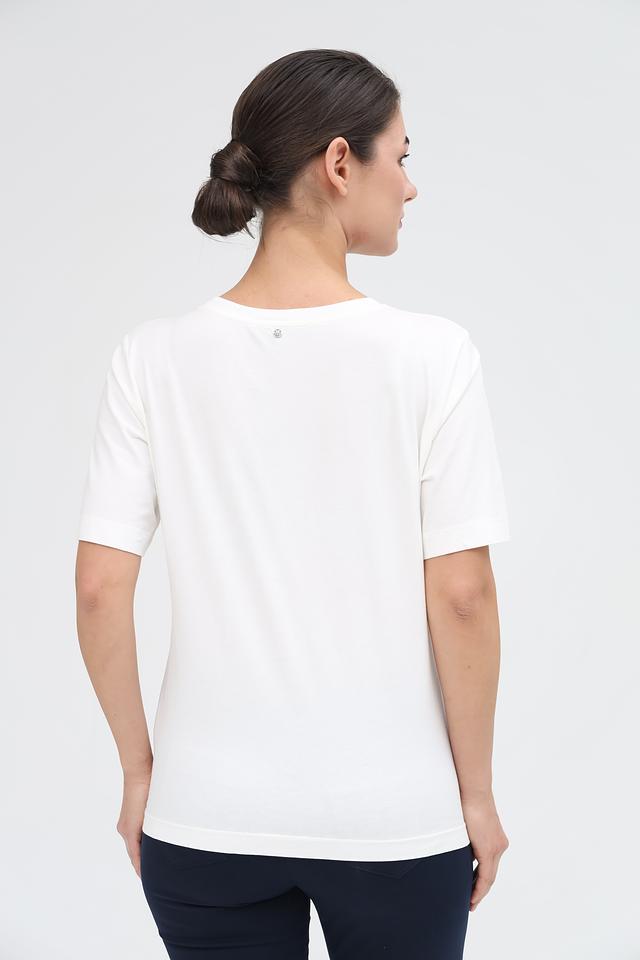 Футболка имеет прямой крой, который обеспечивает свободу движений и комфортную посадку по фигуре. Короткие рукава делают ее идеальным выбором для теплой погоды.