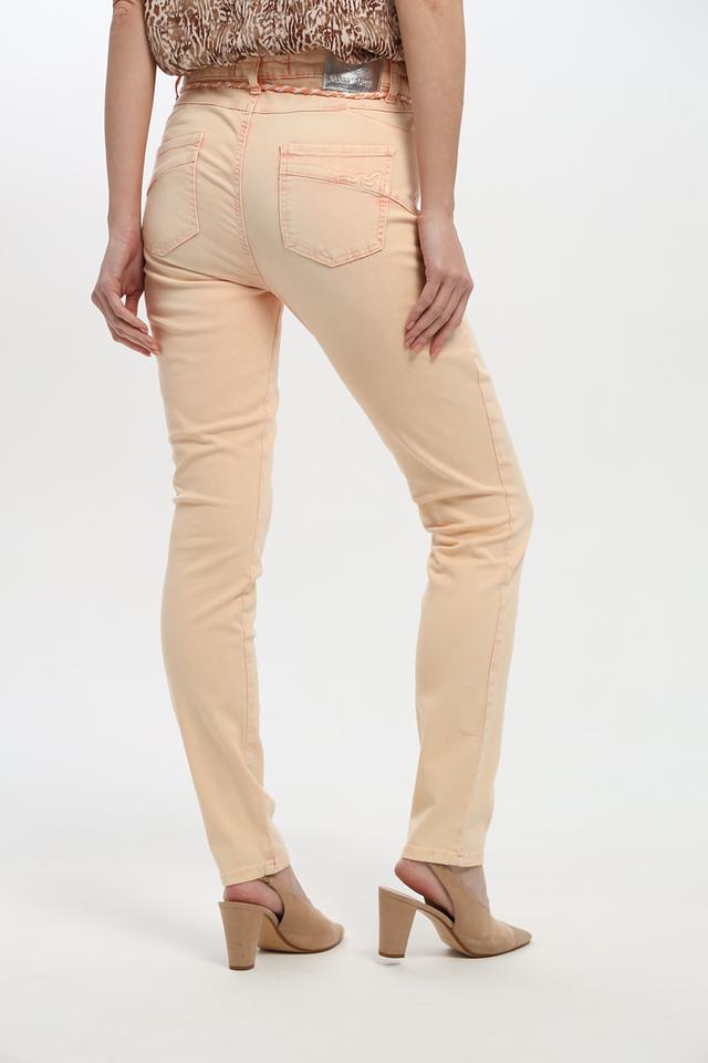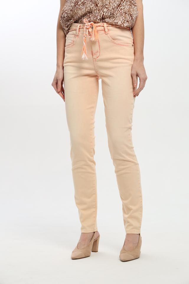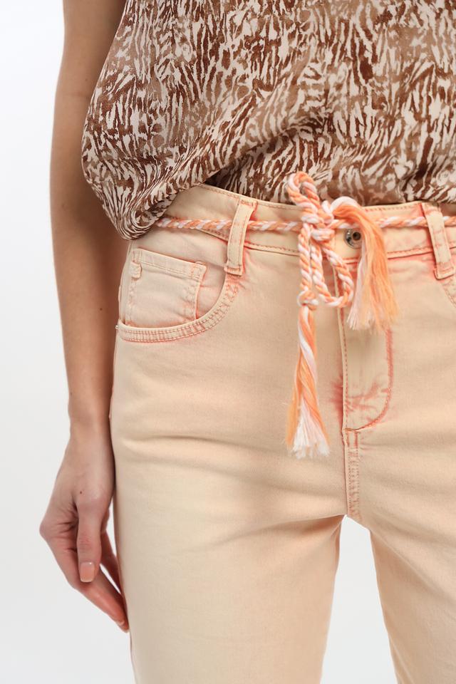 Брюки имеют классический крой и персиковый цвет, который легко сочетается с различными элементами одежды. Оригинальный пояс с завязками не только функционален, но и добавляет образу изюминку.