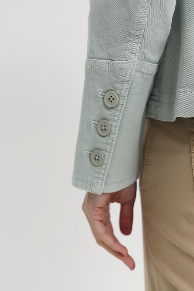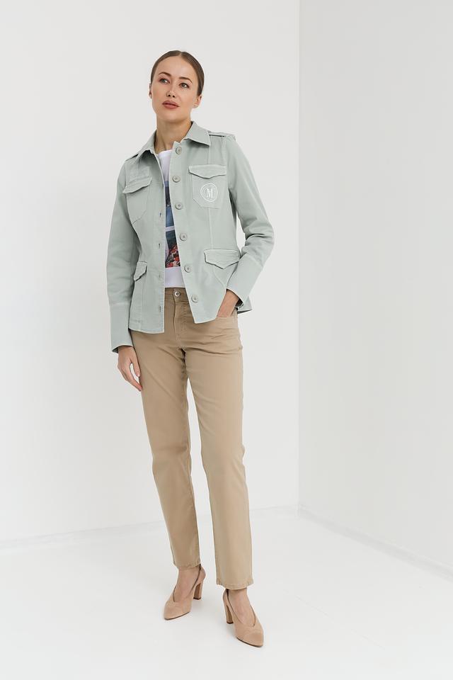 Состав ткани включает 67% хлопок, 29% лиоцел и 4% эластан, что обеспечивает приятные тактильные ощущения, воздухопроницаемость и небольшую эластичность. Этот жакет идеально подойдет для создания повседневных образов.