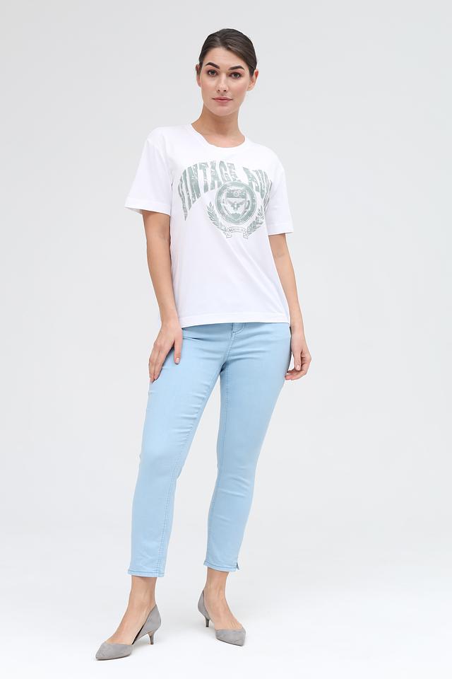 Изготовленная из 100% хлопка, эта футболка приятна к телу, хорошо пропускает воздух и проста в уходе. Она идеально подходит для повседневной носки в теплую погоду. Сочетайте её с джинсами, шортами или юбкой для создания стильного и непринужденного образа.