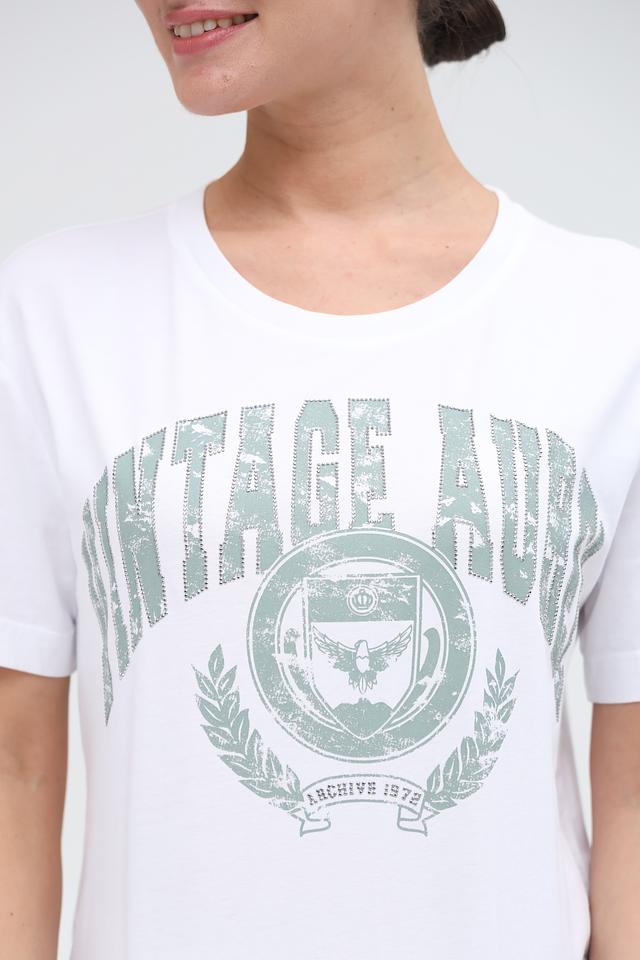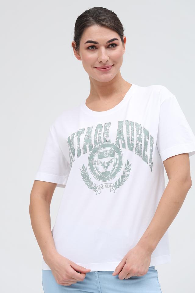 Эта стильная футболка от Marc Aurel станет отличным дополнением к вашему гардеробу. Выполнена в белом цвете и украшена эффектным принтом в винтажном стиле, выполненным в оттенках зелёного.