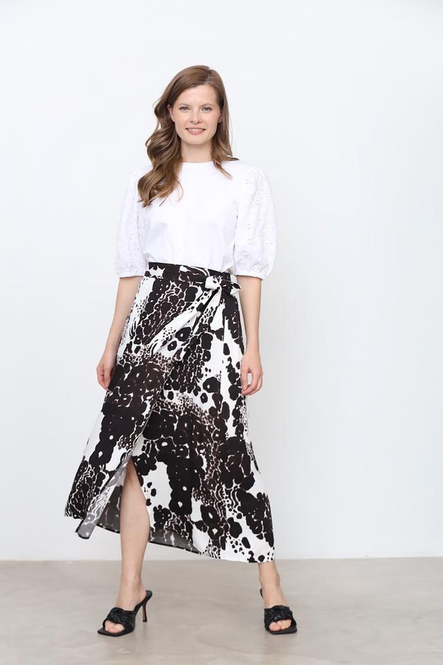 Юбка Marc Aurel чёрно-белого цвета с оригинальным абстрактным принтом и завязками на талии. Изготовлена из мягкой и приятной к телу вискозы, обеспечивающей комфорт в носке. Состав: вискоза 100%