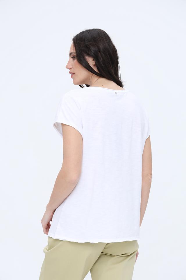 Небольшая асимметрия низа футболки добавляет ей оригинальности и непринужденности. Эта модель станет прекрасным выбором для повседневной носки, прогулок и летних путешествий.