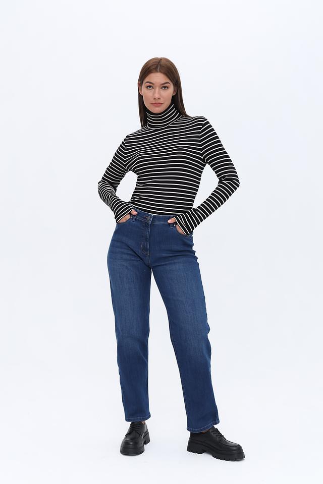 Водолазка выполнена из высококачественного трикотажа, в составе которого преобладает вискоза (86%), обеспечивающая мягкость и приятные тактильные ощущения. Добавление полиэстера (11%) и эластана (3%) придает изделию эластичность и устойчивость к деформации.