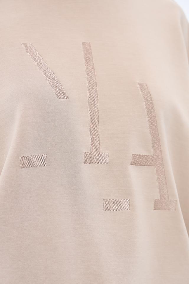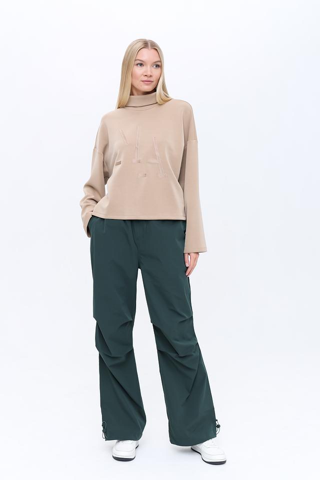 Особенностью модели является оригинальный логотип бренда, расположенный на груди, который придает изделию индивидуальность и узнаваемость. Пуловер изготовлен из высококачественного сочетания материалов: 56% полиэстера, 41% модала и 3% эластана.