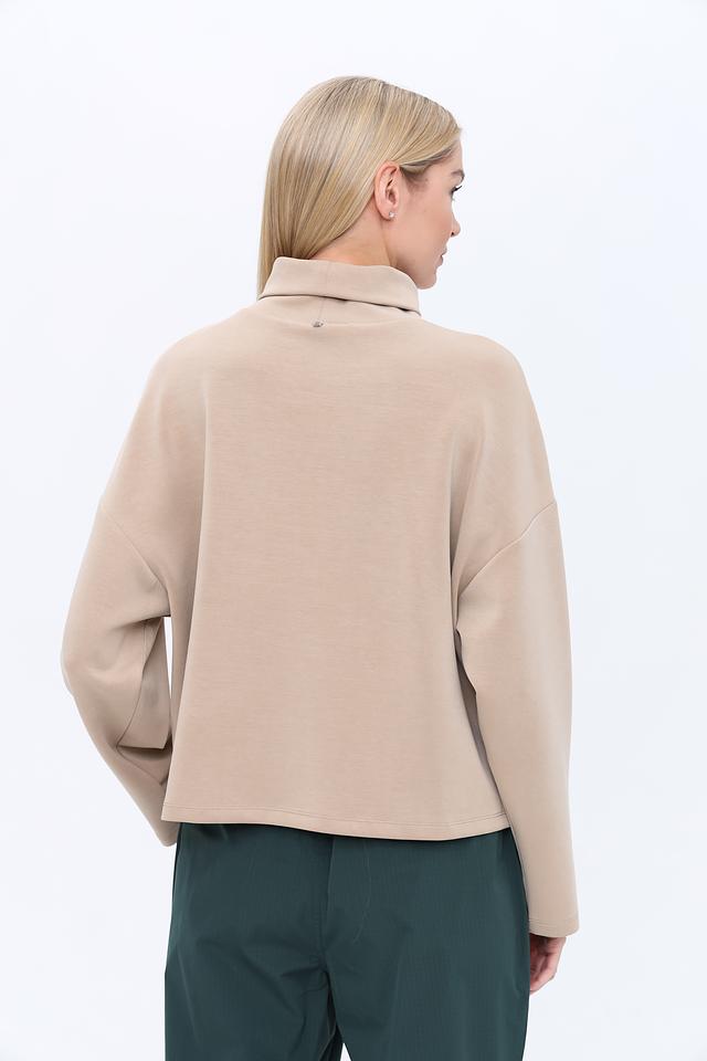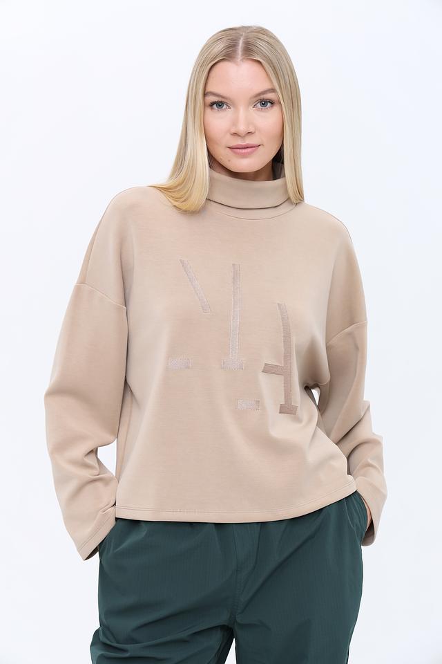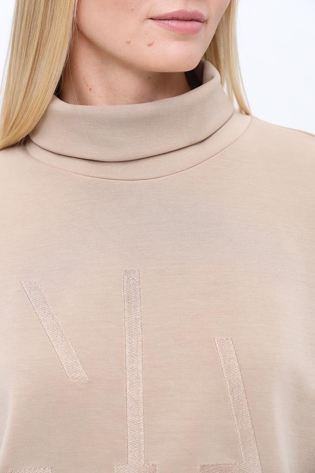 Бежевый пуловер Marc Aurel с высоким горлом и оригинальным логотипом на груди. Изготовлен из мягкого и приятного к телу сочетания полиэстера и модала, обеспечивающего комфорт и удобство в носке. Состав: полиэстер 56%, модал 41%, эластан 3%