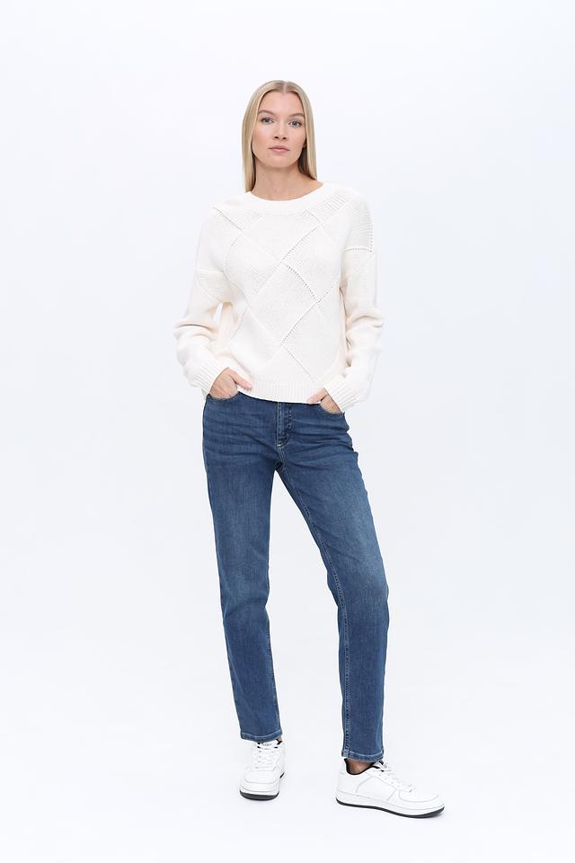 Дизайн джинсов дополнен классическими карманами, аккуратными швами и фирменным логотипом бренда на заднем кармане. Прямой крой и универсальный цвет делают эти джинсы подходящими для создания различных образов – от повседневных до более элегантных.