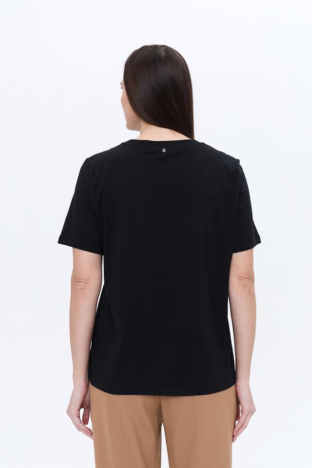Футболка имеет прямой крой, который обеспечивает свободу движений и подходит для любого типа фигуры. Короткие рукава и круглый вырез горловины делают её универсальной для повседневной носки.