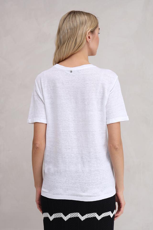 Белая футболка Marc Aurel из 100% льна с оригинальным принтом. Лёгкий и дышащий материал делает эту футболку идеальным выбором для летнего гардероба. Свободный крой обеспечивает комфорт в носке. Состав: лен 100%
