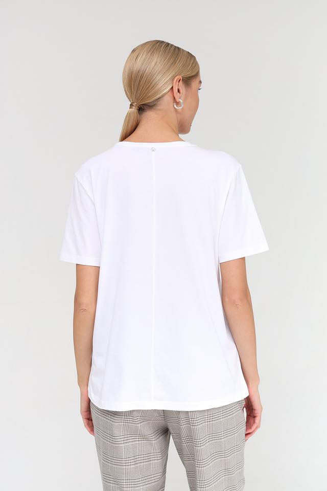 Благодаря своему лаконичному дизайну и нейтральному цвету, эта футболка легко сочетается с другими элементами одежды, такими как джинсы, брюки или юбки. Она идеально подходит для повседневной носки, прогулок или встреч с друзьями.