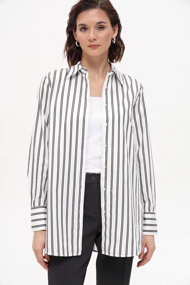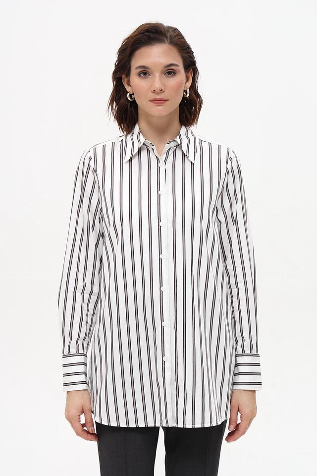 Женская рубашка Marc Aurel белого цвета в классическую полоску. Изготовлена из 100% хлопка, отличается свободным кроем и длинными рукавами с манжетами. Состав: хлопок 100%
