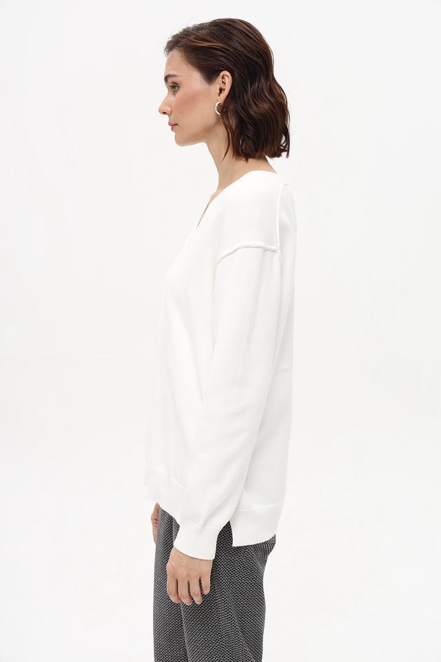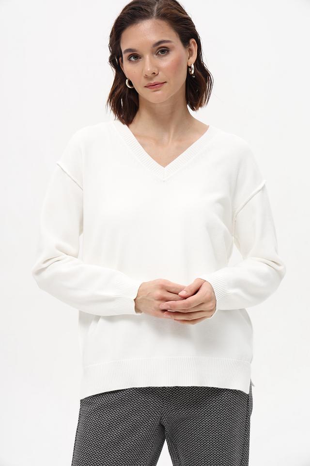 Этот пуловер от Marc Aurel выполнен в классическом белом цвете и имеет V-образный вырез, который визуально удлиняет шею и делает образ более изящным.