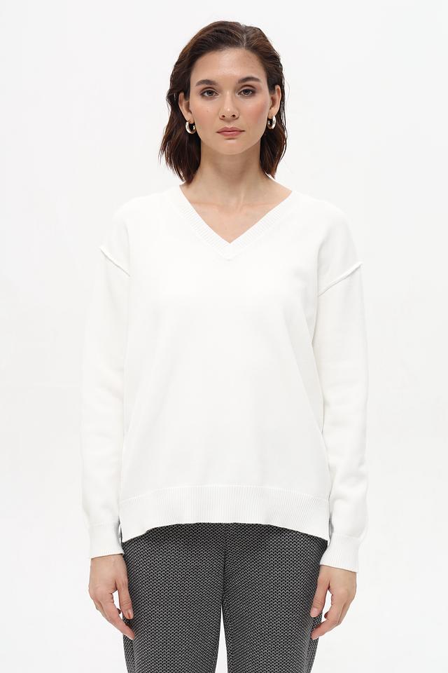 Пуловер Marc Aurel V-образный вырез белый