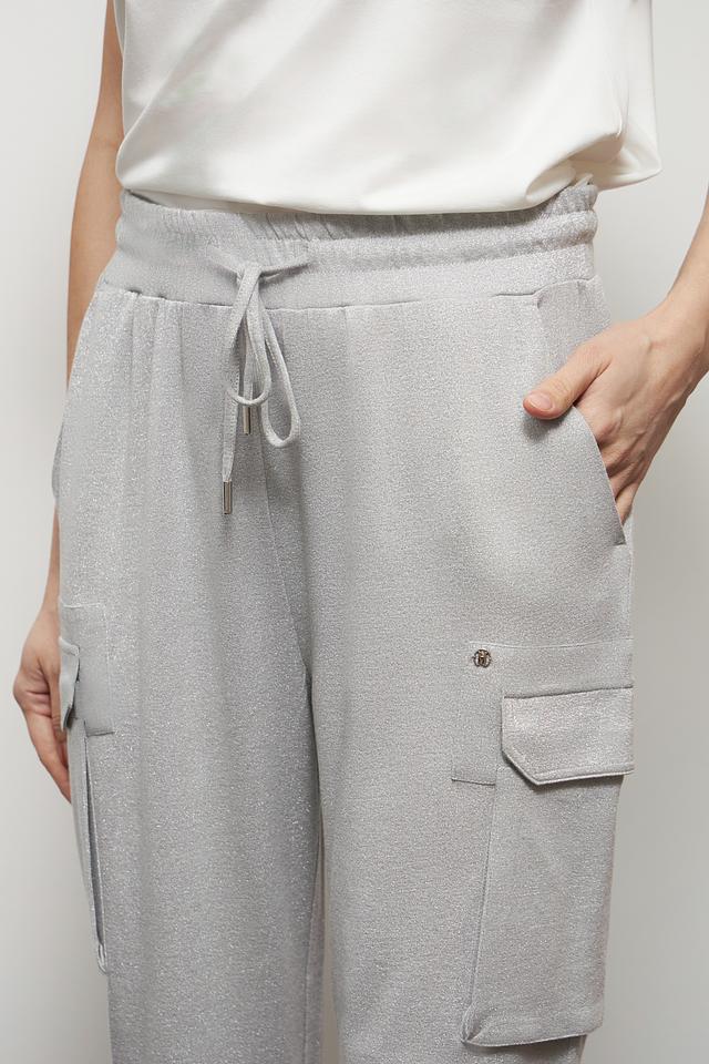 Брюки выполнены из мягкой и приятной к телу ткани, состоящей из вискозы и металлизированной нити. Эластичный пояс с кулиской обеспечивает удобную посадку по фигуре. Модель дополнена функциональными карманами, которые добавляют практичности.