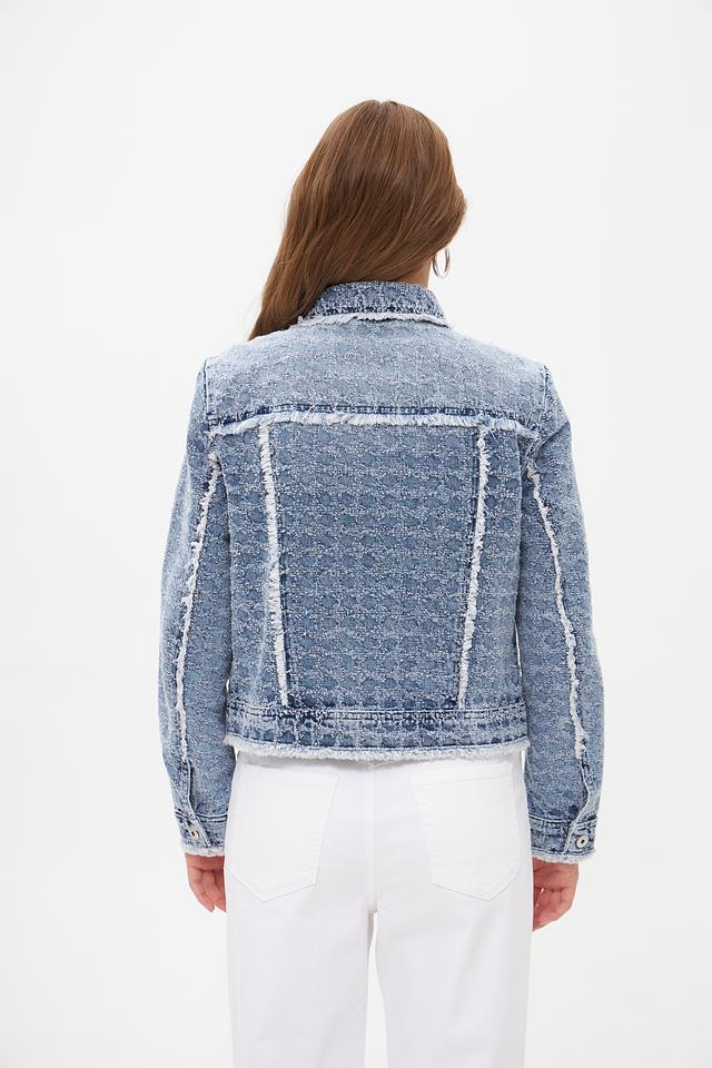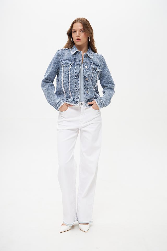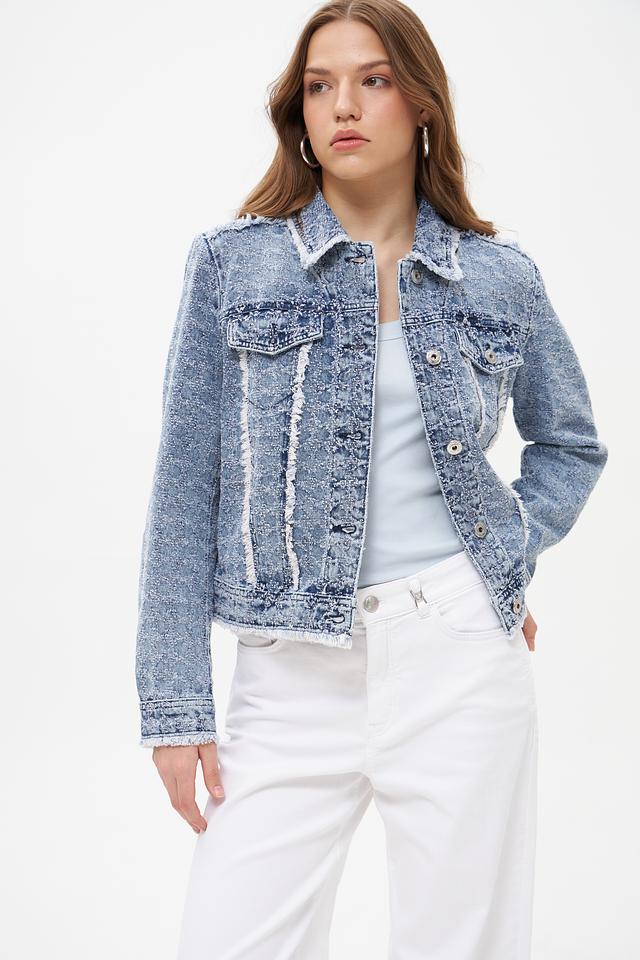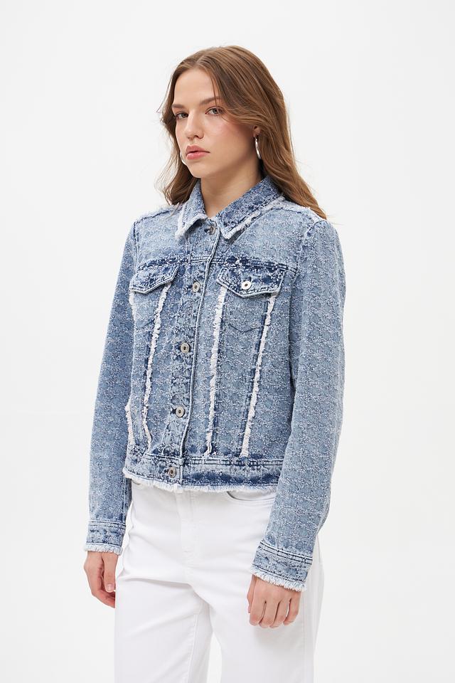 Голубая джинсовая куртка Marc Aurel с эффектом потертости и отделкой бахромой. Изготовлена из 100% хлопка, обеспечивающего комфорт и воздухопроницаемость. Стильный и универсальный элемент гардероба для создания повседневных образов. Состав: хлопок 100%