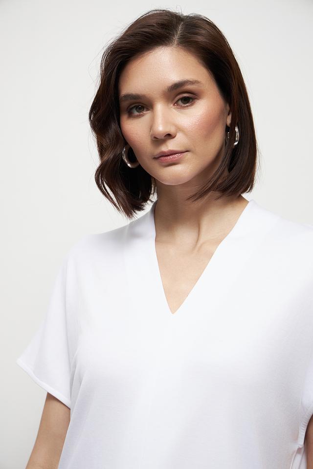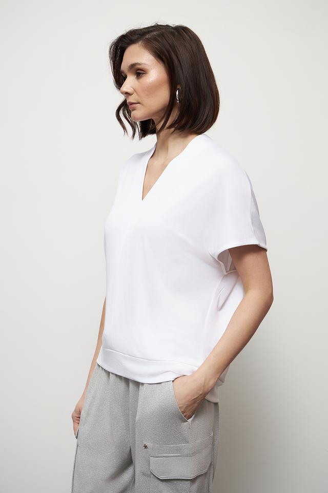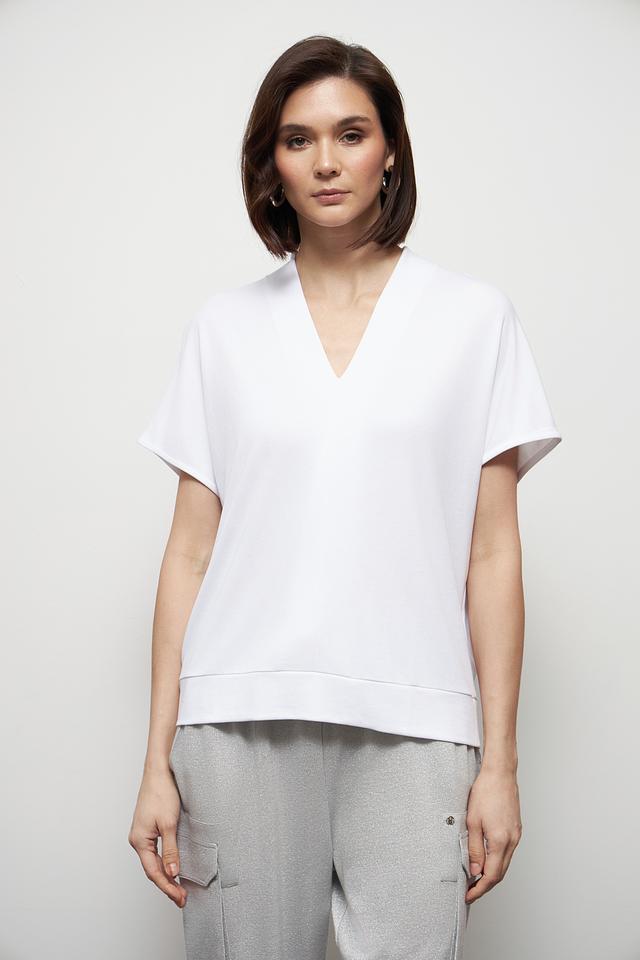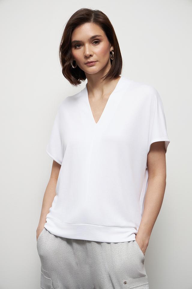 Эта белая футболка от Marc Aurel – идеальный выбор для создания повседневных образов. V-образный вырез и короткие рукава придают ей лёгкость и женственность.