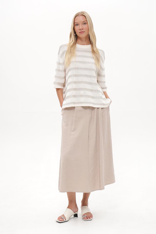 Женский пуловер Marc Aurel бежевого цвета с полоской – это стильное и комфортное решение для повседневного гардероба. Модель выполнена из мягкого трикотажа с добавлением хлопка и полиэстера, что обеспечивает приятные тактильные ощущения и практичность в уходе. Состав: хлопок 61%, полиэстер 24%, полиакрил 15%