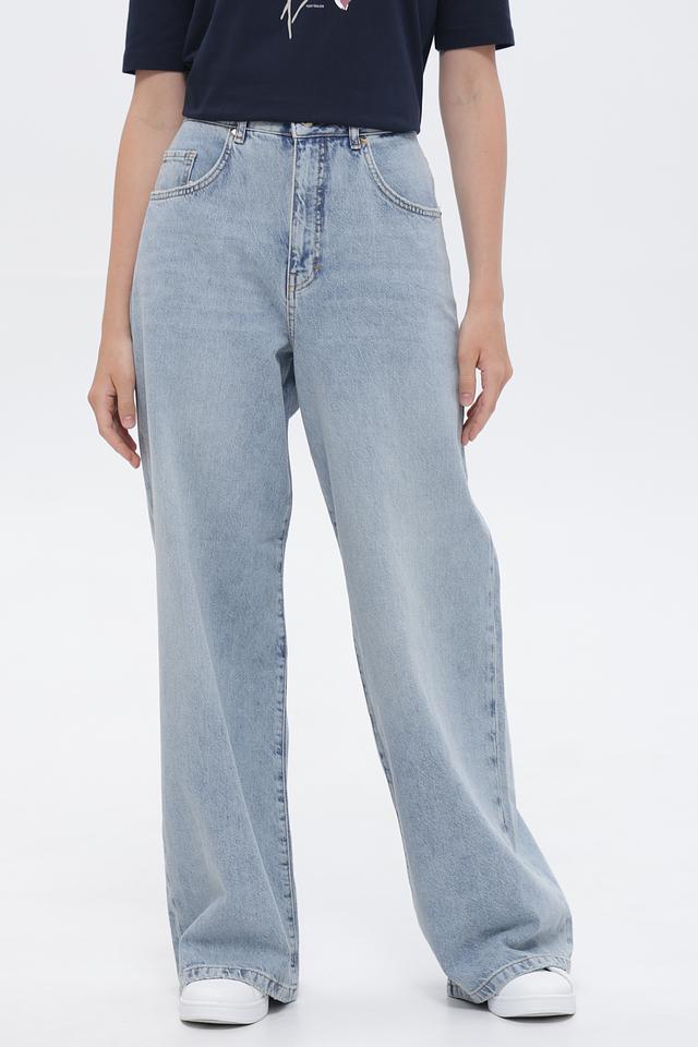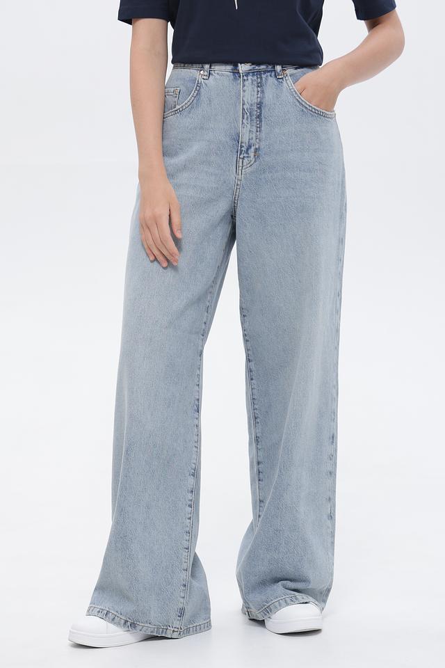 Голубые джинсы клеш от Marc Aurel из 100% хлопка. Модель выполнена в свободном крое с высокой посадкой и эффектом потертости. Состав: хлопок 100%