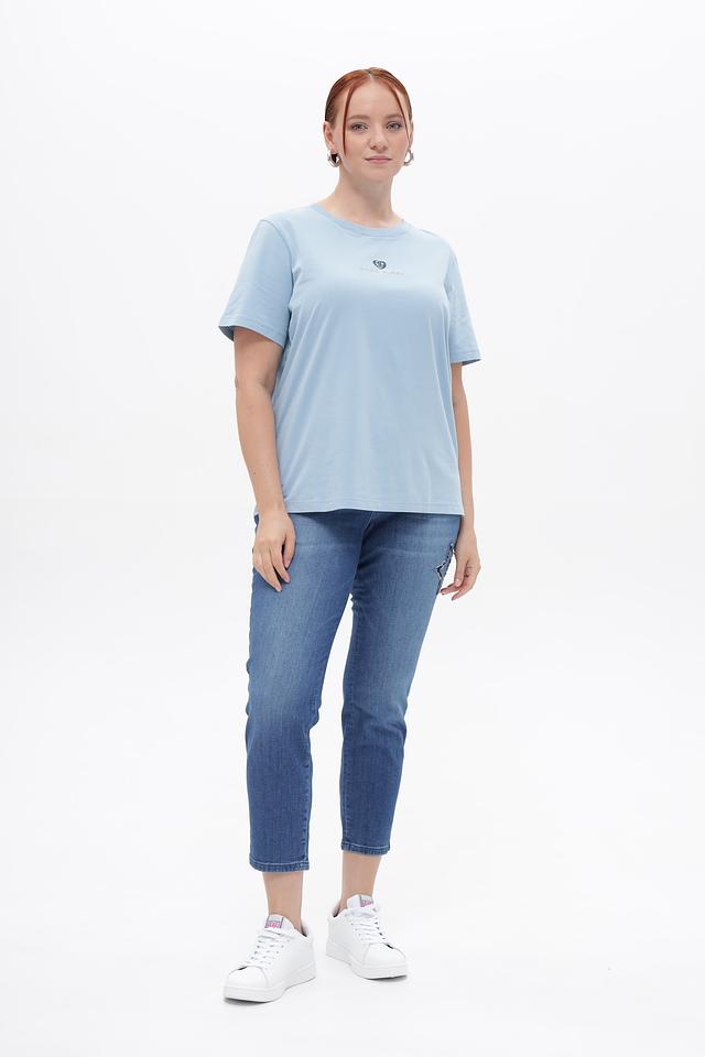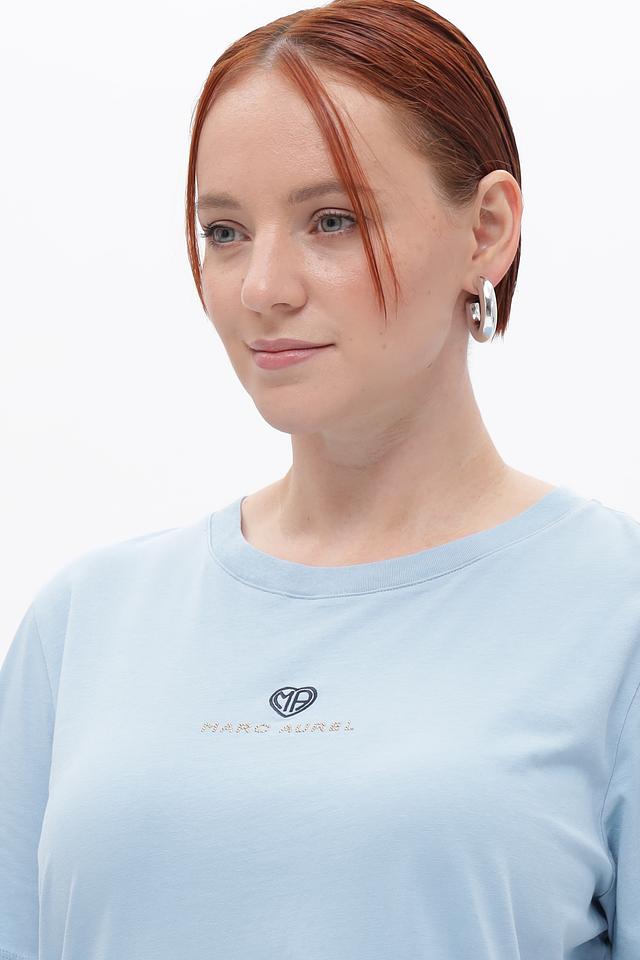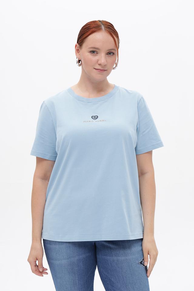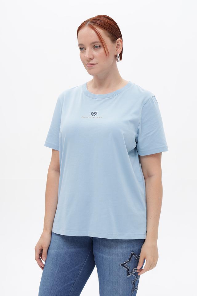 Женская футболка Marc Aurel голубого цвета, выполнена из 100% хлопка. Прямой крой и округлый вырез горловины обеспечивают комфортную посадку. Логотип бренда на груди. Состав: хлопок 100%