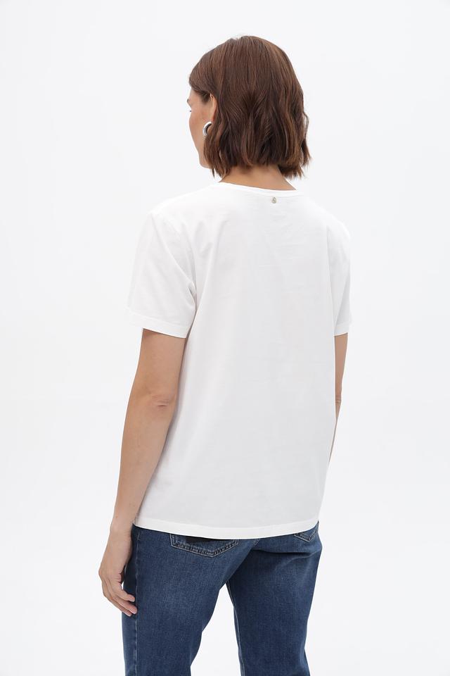 Женская футболка от бренда Marc Aurel, выполненная в белом цвете. Модель имеет прямой крой, короткие рукава и круглый вырез горловины.