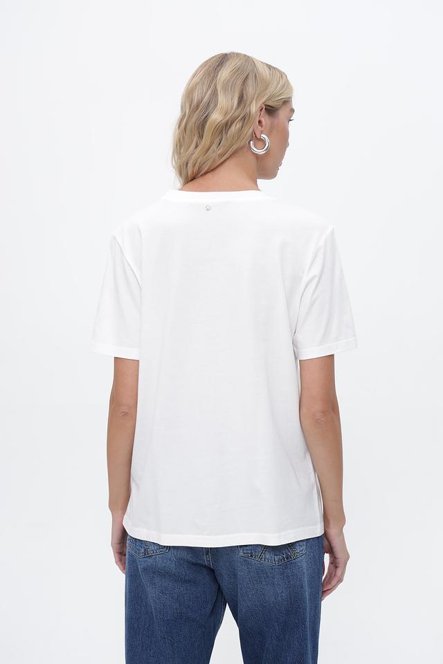 Футболка имеет прямой, слегка свободный крой, который обеспечивает свободу движений и позволяет создавать различные образы. Ее можно сочетать с джинсами, брюками, шортами или юбками. Круглый вырез горловины и короткие рукава делают ее идеальной для теплой погоды. Эта футболка станет отличным дополнением к вашему повседневному стилю.