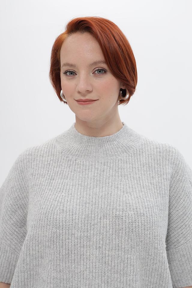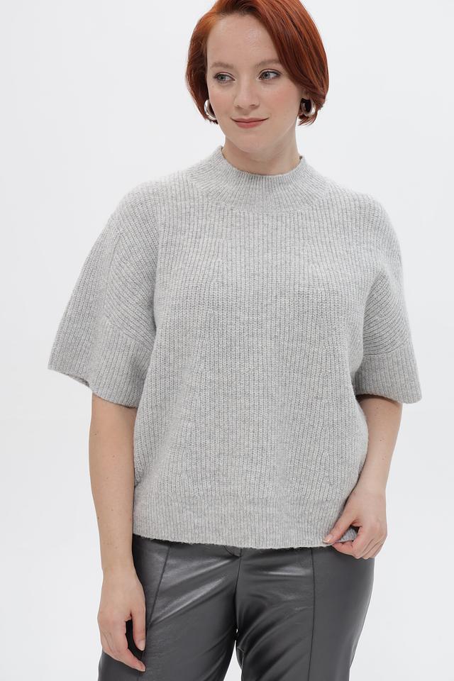Серый пуловер Marc Aurel с коротким рукавом и воротником-стойкой. Изготовлен из мягкой смеси полиэстера, полиамида, шерсти, альпаки и эластана. Состав: полиэстер 67%, полиамид 13%, шерсть 10%, альпака 7%, эластан 3%