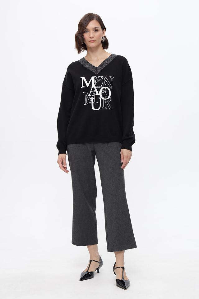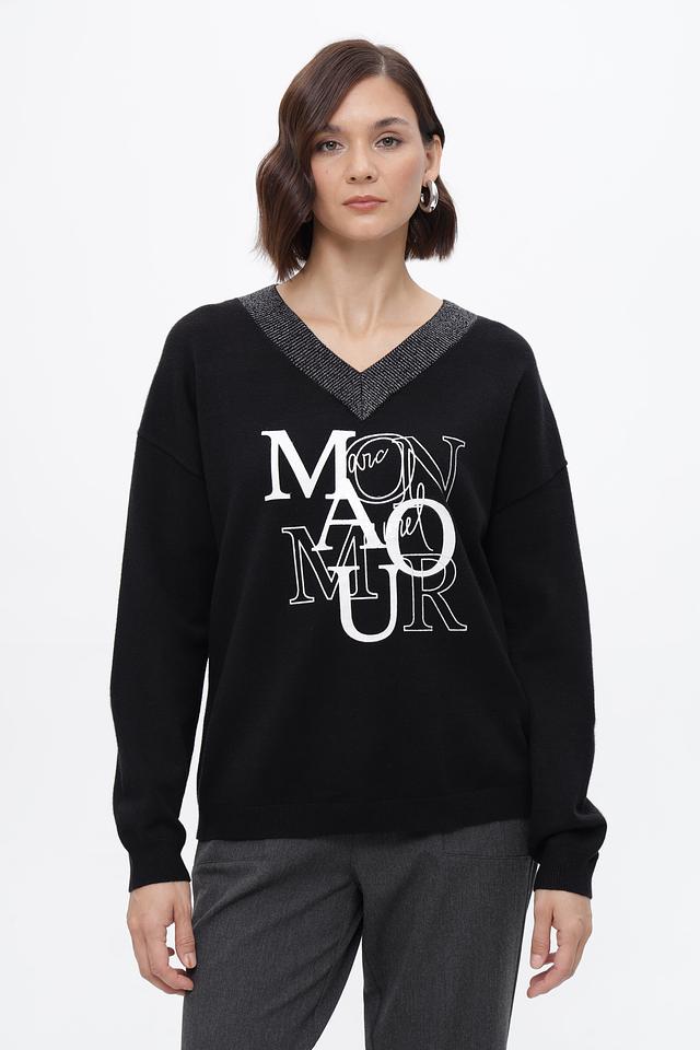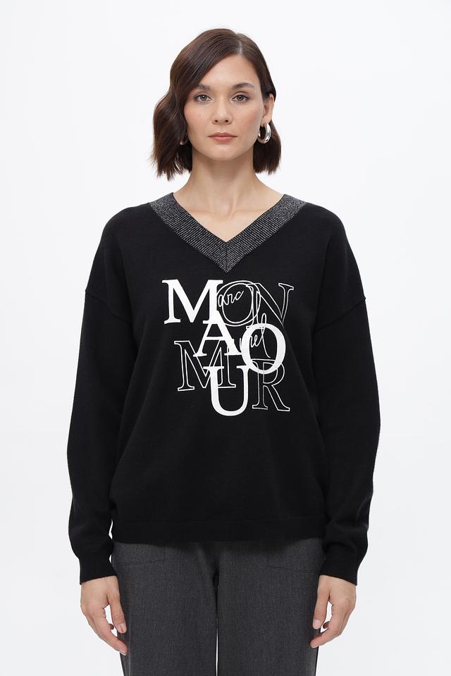 Чёрный пуловер Marc Aurel с декоративным вышитым логотипом. Изготовлен из мягкой вискозы с добавлением полиэстера и полиамида. Состав изделия включает метализированную нить для сияющего эффекта. Состав: вискоза 49%, полиэстер 28%, полиамид 22%, метализ.нить 1%