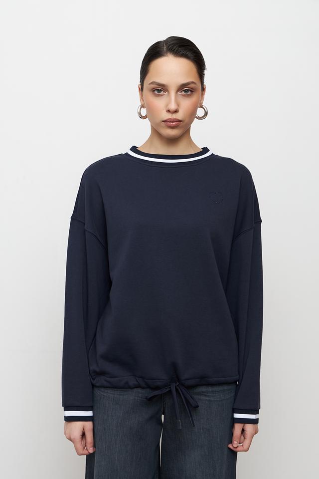 Модель отличается удобным кроем и мягкой текстурой благодаря составу: 60% хлопок и 40% полиэстер. Белая полоса на горловине, манжетах и нижней части придает пуловеру спортивный шик и визуально освежает образ.