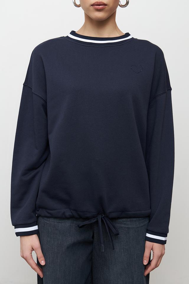 Стильный пуловер Marc Aurel темно-синего цвета с белой полосой на горловине и манжетах. Изготовлен из мягкого хлопка с добавлением полиэстера для комфорта и долговечности. Завершающим штрихом служит завязка на поясе. Состав: хлопок 60%, полиэстер 40%