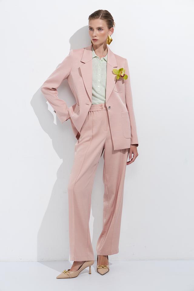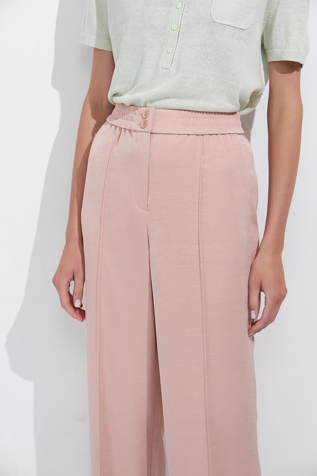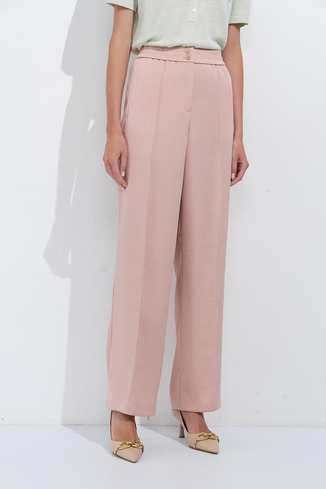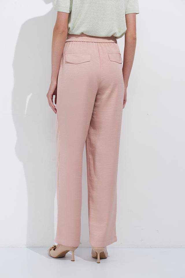 Брюки имеют прямой крой, который визуально удлиняет ноги и подходит для любого типа фигуры. Завышенная талия подчеркивает достоинства силуэта и обеспечивает комфортную посадку. Эластичный пояс гарантирует свободу движений и дополнительный комфорт в течение всего дня.