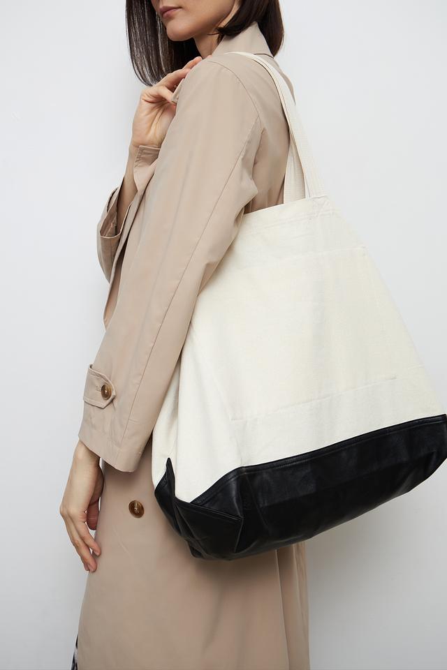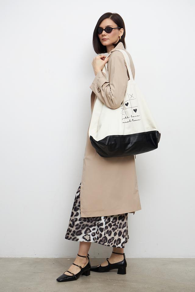 Эта сумка от Marc Aurel сочетает в себе практичность и оригинальный дизайн. Основной цвет сумки – кремовый, а нижняя часть выполнена из чёрного материала, что создаёт интересный контраст.