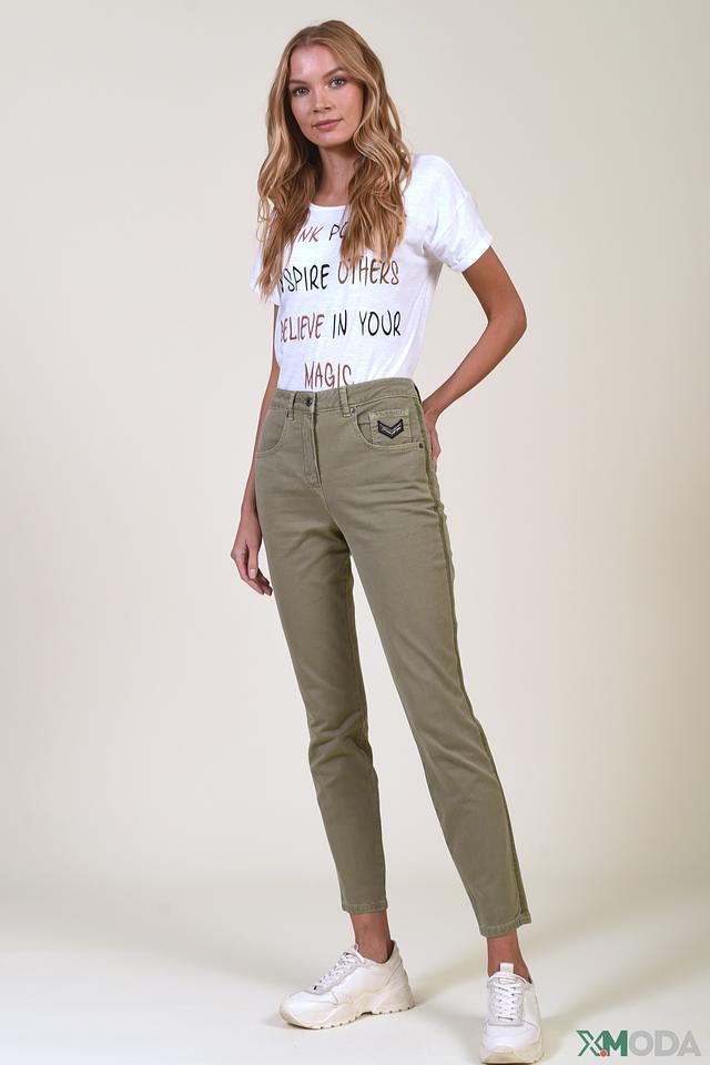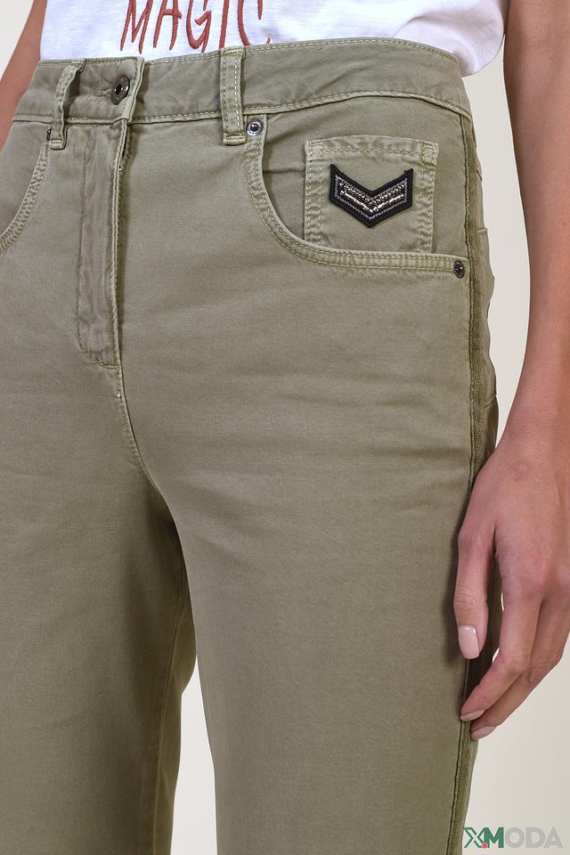 Женские брюки Marc Aurel цвета хаки — удобная и стильная модель с высокой посадкой и декоративной вышивкой на кармане. Изготовлены из хлопка с добавлением лиоцелла и эластана для комфорта и долговечности. Состав: хлопок 54%, лиоцел 43%, эластан 3%
