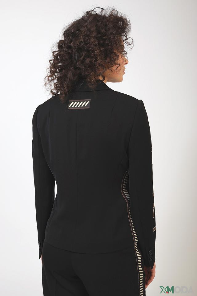 Чёрный жакет Marc Aurel из 100% полиэстера с надписью "RESET" на рукавах. Классический крой и лаконичный дизайн делают этот жакет универсальным элементом гардероба. Состав: полиэстер 100%