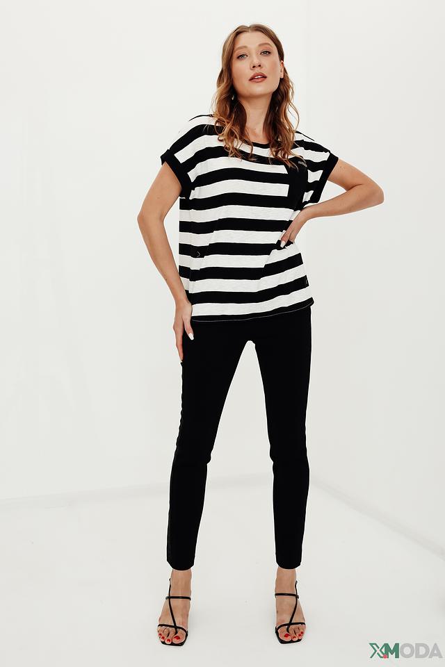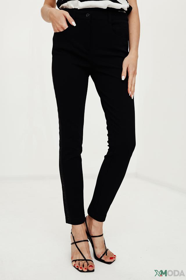 Брюки имеют прямой, слегка зауженный к низу силуэт (slim fit), который подчеркивает достоинства фигуры и обеспечивает комфортную посадку. Высокая посадка визуально удлиняет ноги и создает более пропорциональный силуэт. Ткань, состоящая из 95% полиамида и 5% эластана, отличается высокой износостойкостью, приятна на ощупь и хорошо держит форму.