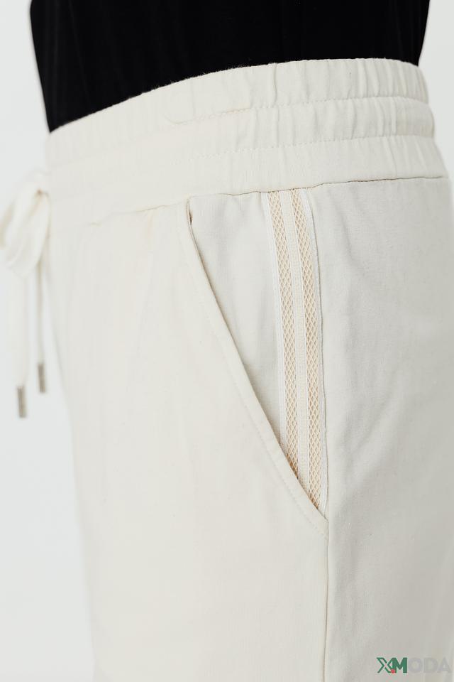 Брюки имеют прямой крой и эластичный пояс с кулиской, обеспечивающий комфортную посадку. Боковые карманы добавляют функциональности и практичности.