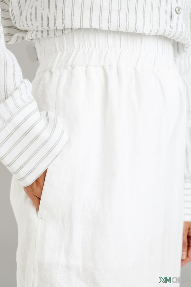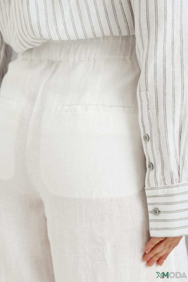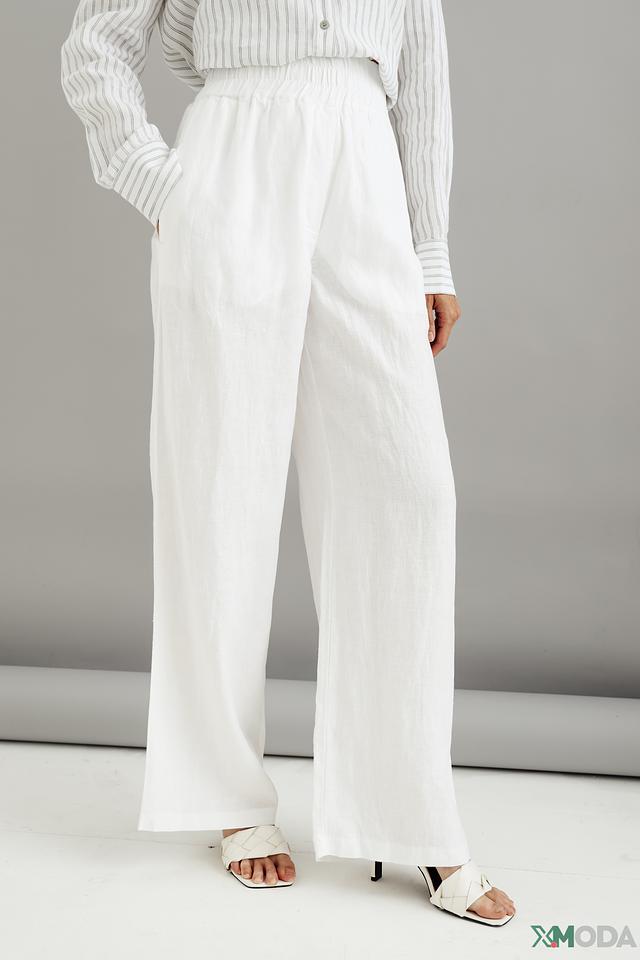 Брюки оснащены боковыми карманами и эластичным поясом, что обеспечивает дополнительный комфорт при носке. Идеально подойдут для создания повседневных и вечерних образов. Льняная ткань требует бережного ухода, но дарит ощущение прохлады и комфорта в жаркую погоду.