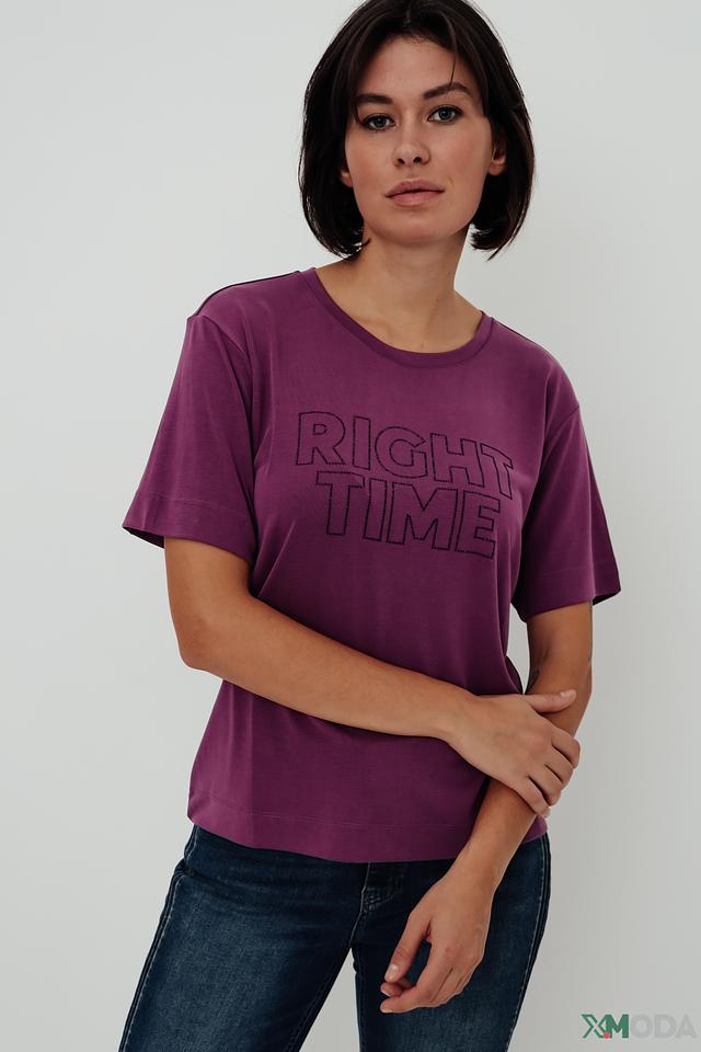 Женская футболка Marc Aurel фиолетового цвета с надписью "RIGHT TIME" — стильная и комфортная модель из модала и полиэстера. Прямой крой и короткие рукава обеспечивают свободу движений, а оригинальный принт добавляет образу индивидуальности. Состав: модал 78%, полиэстер 22%