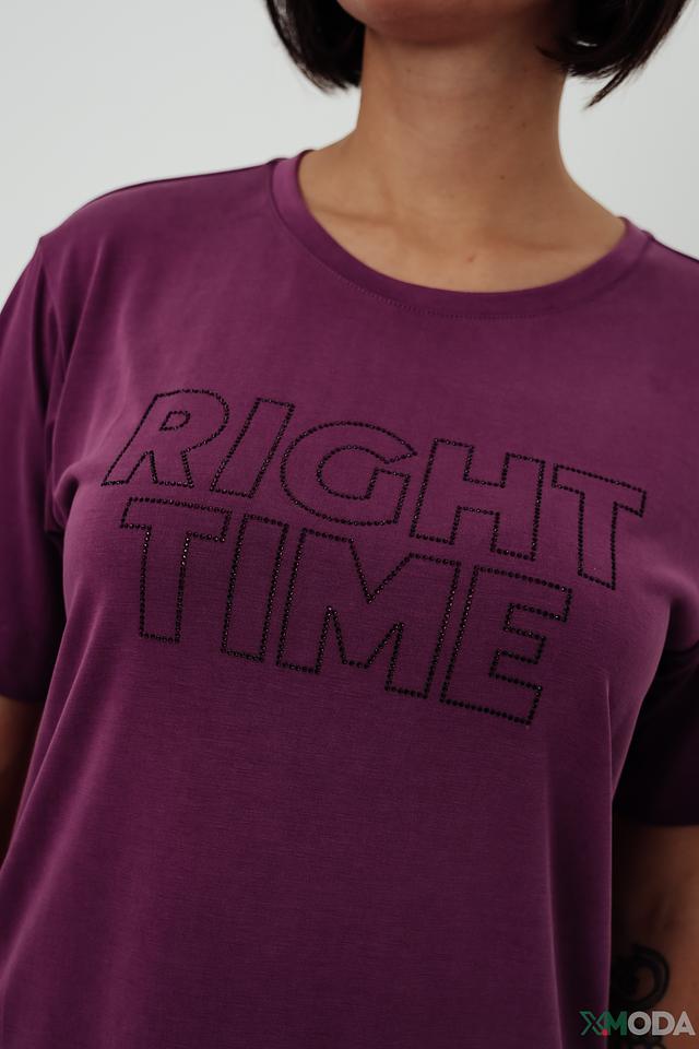 Особый акцент в этой модели – крупный принт "RIGHT TIME", выполненный в тон ткани, что придает футболке лаконичный и стильный вид. Минималистичный дизайн делает эту футболку универсальной, позволяя сочетать ее с различными элементами одежды – от джинсов и шорт до юбок и брюк.