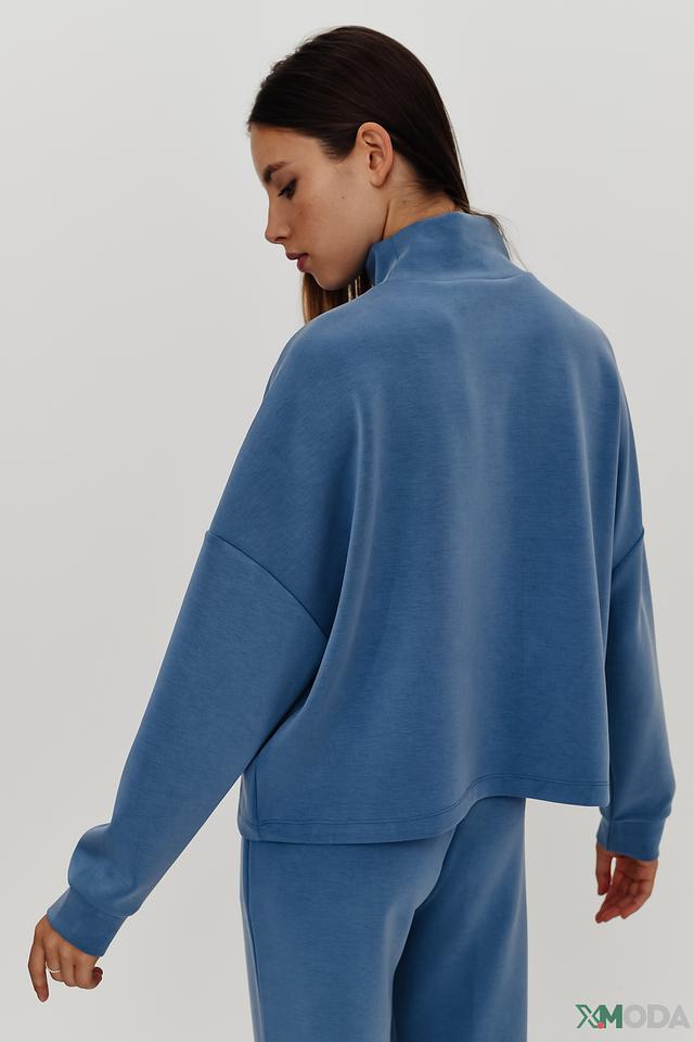 Пуловер изготовлен из высококачественного сочетания материалов: 56% полиэстера, 41% модала и 3% эластана. Это сочетание обеспечивает мягкость, приятные тактильные ощущения и хорошую износостойкость. Эластан добавляет изделию небольшую эластичность, что позволяет ему хорошо сидеть по фигуре.