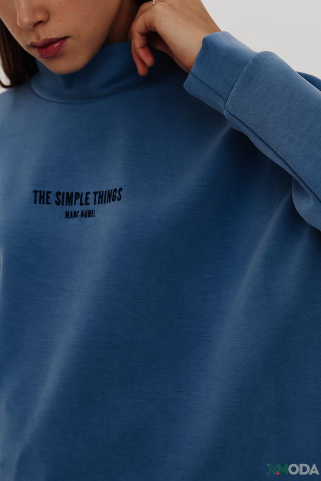 Голубой пуловер от Marc Aurel – это удобная и стильная модель с высоким воротом и надписью "THE SIMPLE THINGS". Изготовлен из мягкого сочетания полиэстера и модала, обеспечивающего комфорт в носке. Состав: полиэстер 56%, модал 41%, эластан 3%