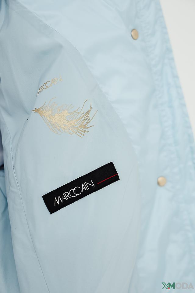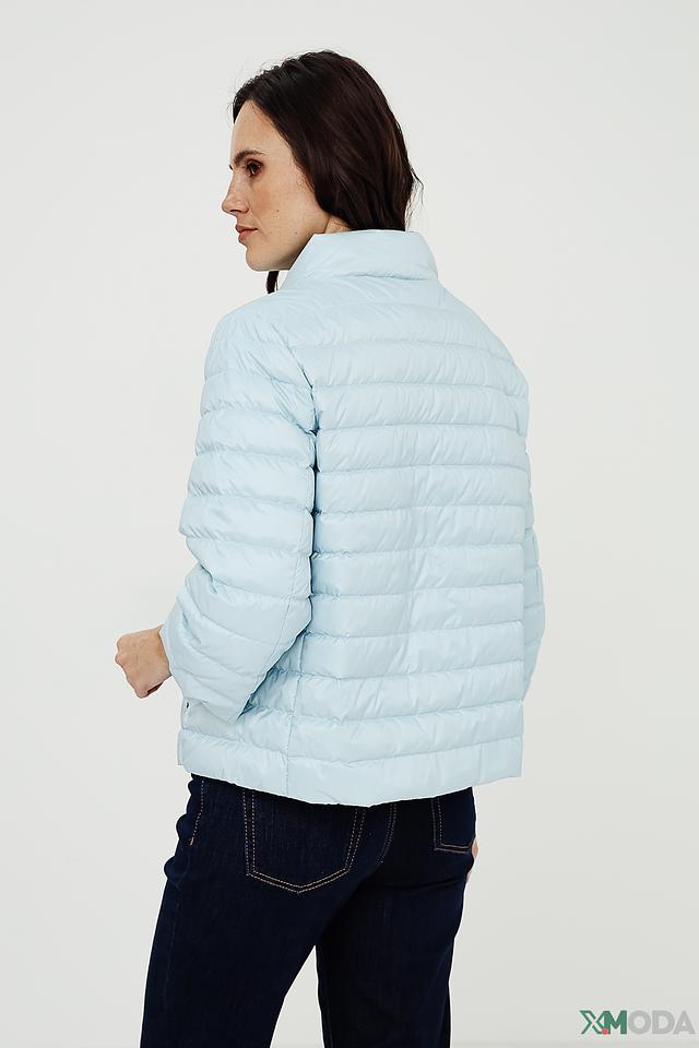 Эта куртка от Marc Cain выполнена в нежном голубом цвете и имеет стеганую текстуру. Модель отличается легким весом и удобной посадкой, что делает ее идеальным выбором для повседневной носки.