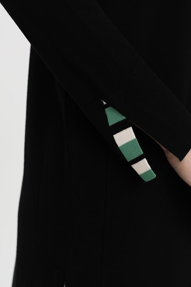 На манжетах рукавов присутствует деликатный декоративный элемент в зелёных тонах, который добавляет изысканности и индивидуальности изделию.